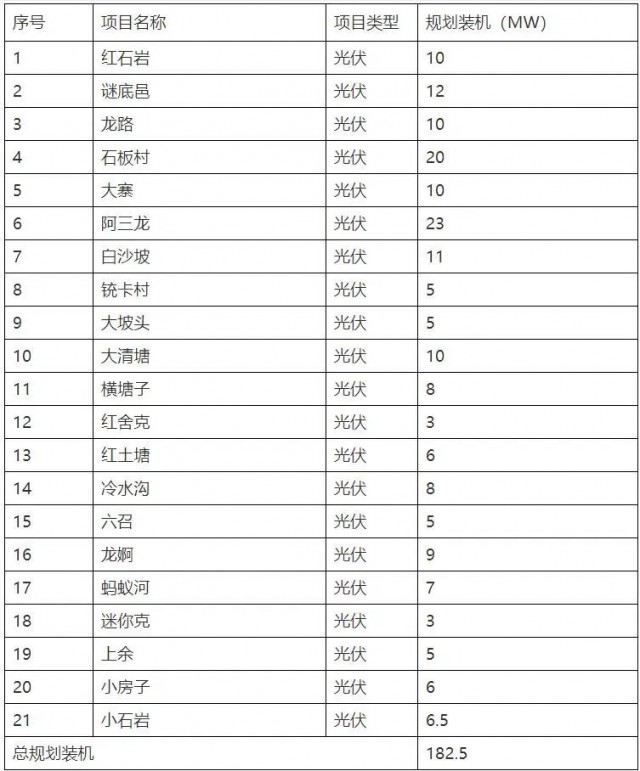 (三)項目規(guī)劃資源配置:182.5萬千瓦光伏發(fā)電項目(以上容量為規(guī)劃裝機,需投資主體根據政策進一步排查落實)。
