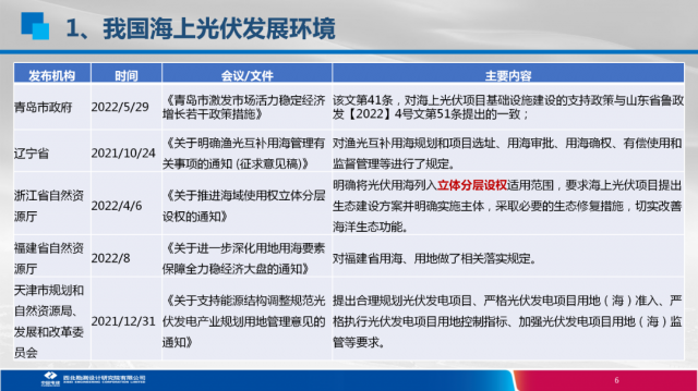 近年,隨著新能源裝機需求的增長及雙碳目標(biāo)提出,山東、浙江、江蘇、福建等多個東部沿海省份由于土地稀缺,均加快布局海上光伏建設(shè),陸續(xù)出臺支持海上光伏發(fā)展的相關(guān)政策。除了分布式、大基地、海上正成為光伏應(yīng)用的重要場景和爭奪重點。
