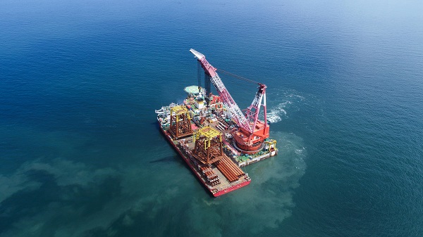 項目團隊創(chuàng)新使用雙線作業(yè)模式,統(tǒng)籌指揮兩支船隊同時作業(yè),高效完成14個結(jié)構(gòu)單體海上安裝,累計安裝重量達3.6萬噸。其中,最后2座組塊安裝僅用時不到6天,為區(qū)塊海上安裝全部完成贏得寶貴時間。