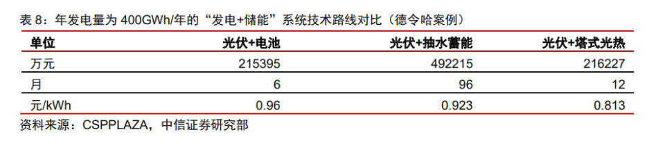 同時,考慮到國內(nèi)電力系統(tǒng)轉(zhuǎn)型同時從“大基地+大電網(wǎng)”和“分散式電源+分布式智 能電網(wǎng)”雙線并行,兩種模式下產(chǎn)生了當(dāng)下不同的技術(shù)路線、解決方案偏好。前者重點(diǎn)在 國內(nèi)“十四五”期間約 450GW 風(fēng)光大基地的基礎(chǔ)上,配置靈活性資源;扣除前兩批大基 地中較多配置在原有大基地及特高壓外輸通道周圍,剩余風(fēng)光大基地結(jié)合目前已落地項(xiàng)目 來看,主靈活性資源一般會結(jié)合當(dāng)?shù)刭Y源條件選擇靈活性火電或抽水蓄能電站,并補(bǔ)充一 定的鋰電儲能電站及光熱(熔鹽儲熱)電站。后者考慮分布式系統(tǒng)對靈活布點(diǎn)、項(xiàng)目規(guī)模 的需求差異,多以電化學(xué)儲能電站為主。預(yù)計(jì)在現(xiàn)行政策引導(dǎo)及項(xiàng)目儲備背景下,“十四 五”期間光熱電站(熔鹽儲能)新增裝機(jī)規(guī)模 4-5GW,對應(yīng) EPC 造價空間約 640-800 億 元,在“十四五”期間國內(nèi)新增儲能裝機(jī)中占比約 3-4%。