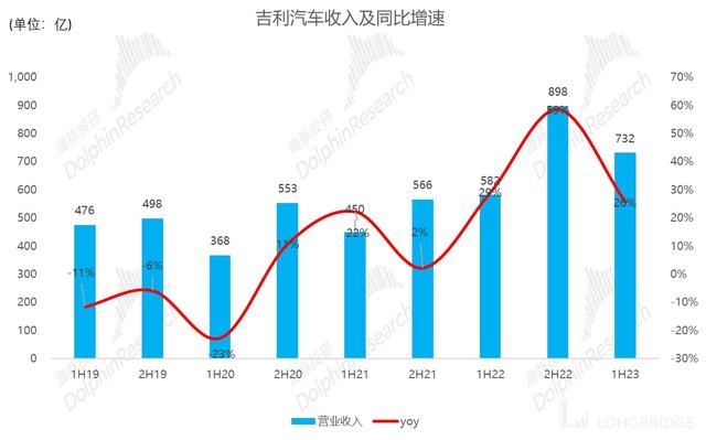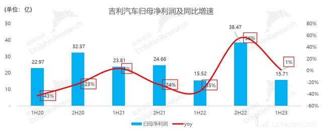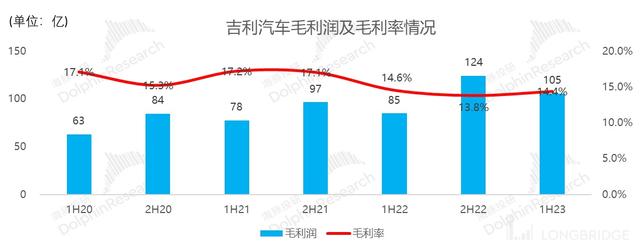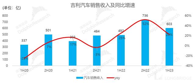根據(jù)海豚君計算,公司 2023 年上半年實現(xiàn)單車收入(不含領克和睿藍)10.4 萬元,同比增 10%,超出市場預期 9.2 萬元。