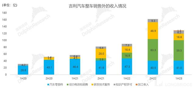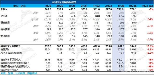 2023 年上半年,公司整車銷售業(yè)務實現(xiàn)營收 603 億元,同比增 23%,超出市場預期 10.8%。在銷量(不含領克、睿藍)同比增長 12% 的但銷量數(shù)據(jù)市場已知的情況下,單車 ASP 超出市場預期 13.3%,帶動整車銷售業(yè)務大幅度超預期。