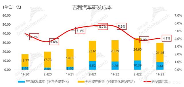 在吉利正在往電動、智能化轉(zhuǎn)型的方向上,夾雜吉利燃油、電動的渠道梳理及變革,經(jīng)營費用過于剛性,只能靠銷售釋放來稀釋投入,本季度吉利在研發(fā)和銷售等剛性費用支出繼續(xù)加大,但符合海豚君預期。
