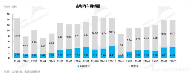 2、但上半年新能源轉(zhuǎn)型速度偏慢:上半年新能源車銷量環(huán)比下滑 28%,僅完成全年銷量 24%,完成進度較慢,除了銀河混動上半年還沒有真正上量之外,主要是純電與睿藍與極氪品牌銷量放緩有關。