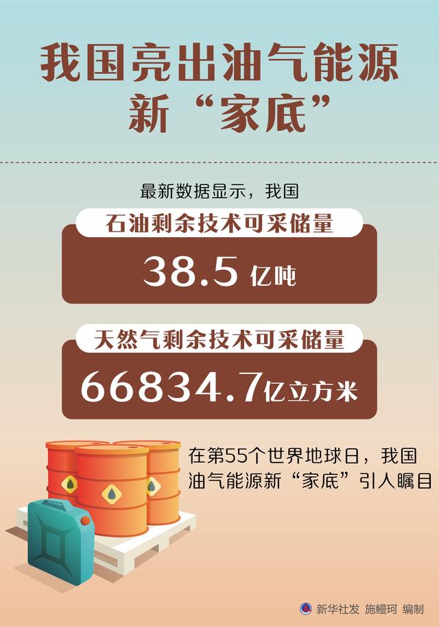 最新數(shù)據(jù)顯示,我國石油剩余技術可采儲量38.5億噸,天然氣剩余技術可采儲量66834.7億立方米。在第55個世界地球日,我國油氣能源新“家底”引人矚目。
