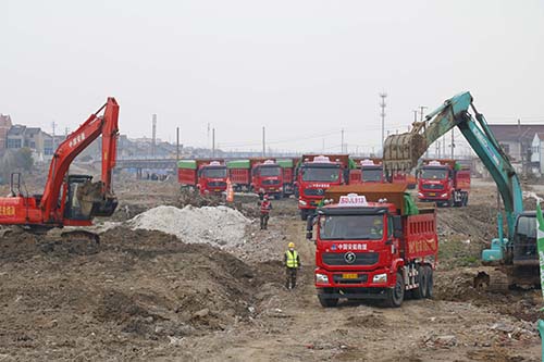 2月21日,工人們戴著口罩在工地上進(jìn)行作業(yè)、挖掘機(jī)忙著挖掘碎石和泥塊,渣土車來來往往清運(yùn)著石料……繁忙的景象打破了多日沉寂,由中國安能第二工程局常州分公司承建的新孟河延伸拓浚工程常州新北區(qū)河道八標(biāo)段正式復(fù)工。