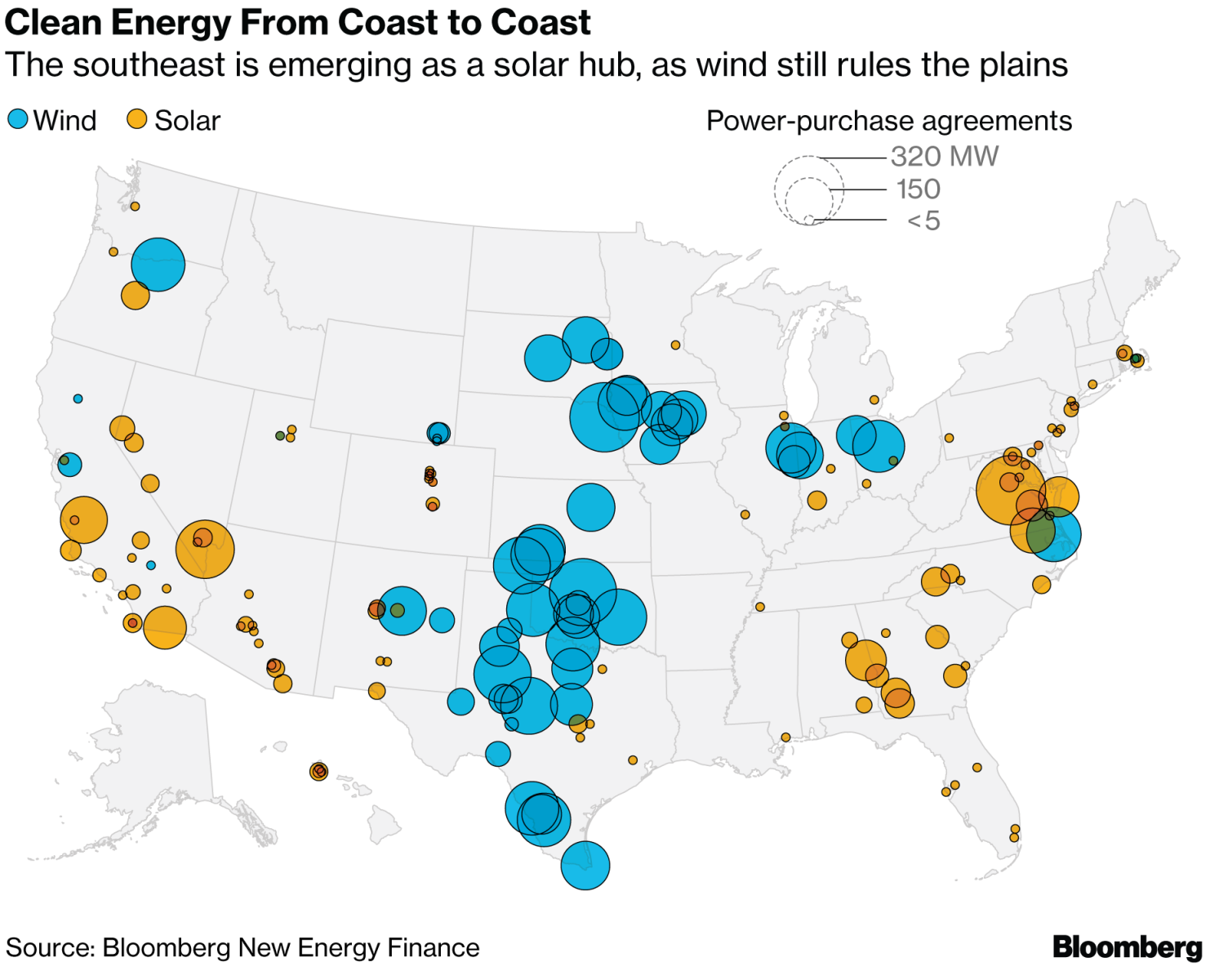 在美國(guó)簽署長(zhǎng)期合同購(gòu)買清潔能源的公司一般都在尋找風(fēng)力發(fā)電的中心地帶和沿海國(guó)家的太陽(yáng)能。