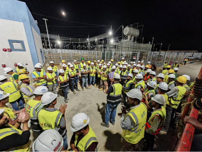 為確保倒送電工作順利完成,項(xiàng)目部科學(xué)組織、精心策劃,積極協(xié)調(diào)業(yè)主方、民防局和埃及電網(wǎng)公司等相關(guān)單位,按照時(shí)序計(jì)劃,逐步驗(yàn)收,特別是在倒送電開始前,對相關(guān)部門專業(yè)人員進(jìn)行全面的安全與技術(shù)交底,嚴(yán)格執(zhí)行倒送電調(diào)試措施。在項(xiàng)目業(yè)主和埃及電網(wǎng)公司相關(guān)負(fù)責(zé)人的見證下,整個(gè)受電過程順利、可控且受電后各系統(tǒng)設(shè)備運(yùn)行正常,參數(shù)準(zhǔn)確無誤。
