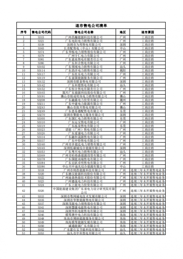 廣東電力交易中心今日發(fā)布通知,對(duì)266家售電公司實(shí)施強(qiáng)制退市,從電力市場(chǎng)主體目錄中刪除,并注銷其電力交易平臺(tái)賬號(hào)。
