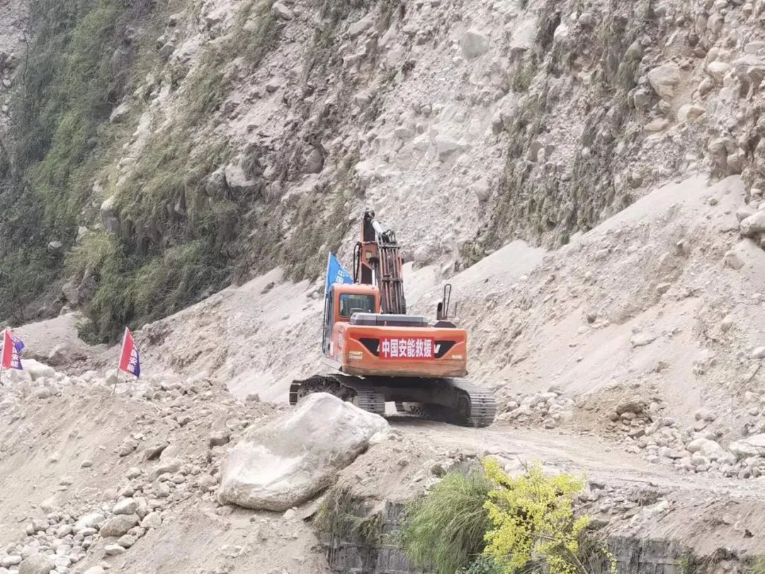 在瀘定縣至磨西鎮(zhèn)道路搶通段,中國(guó)安能搶通分隊(duì)30人,6臺(tái)套裝備爭(zhēng)分奪秒進(jìn)行排險(xiǎn)搶通作業(yè),工程測(cè)量人員運(yùn)用專(zhuān)業(yè)儀器實(shí)時(shí)對(duì)山體進(jìn)行監(jiān)測(cè)。由于塌方量較大,有很多大塊石的處置增加了施工難度,同時(shí)面臨余震導(dǎo)致再次山體滑坡和落石的危險(xiǎn),非??简?yàn)操作手的專(zhuān)業(yè)技術(shù)水平和心理素質(zhì)。排險(xiǎn)過(guò)程中,為確保安全高效,搶險(xiǎn)分隊(duì)把指揮員、操作手、測(cè)量員配置成多個(gè)小組輪番不停歇地進(jìn)行作業(yè)。9月6日13時(shí)40分,經(jīng)過(guò)23小時(shí)晝夜奮戰(zhàn),瀘定縣至磨西鎮(zhèn)道路完成搶通,實(shí)現(xiàn)雙向通車(chē),救援人員、車(chē)輛、物資正源源不斷運(yùn)向?yàn)?zāi)區(qū)。