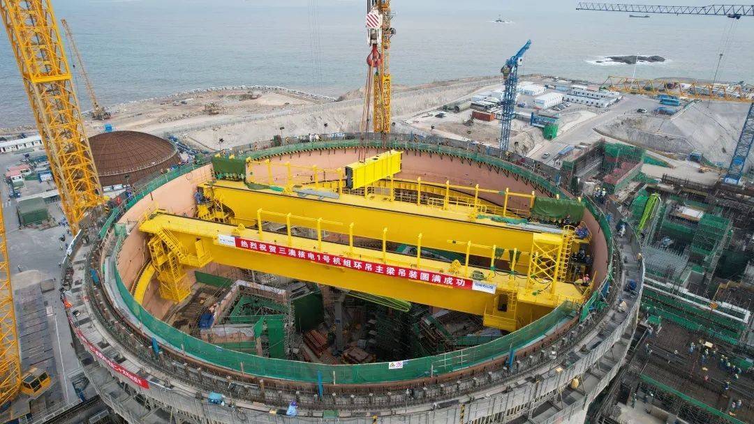 安裝后的環(huán)吊,用于反應堆廠房建造期間和核電站正常停堆換料期間各種設備的吊運。