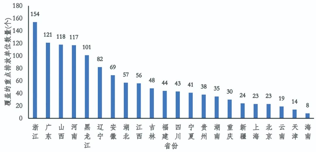 2022年納入全國碳排放權(quán)交易配額管理的重點排放單位分布情況(部分)