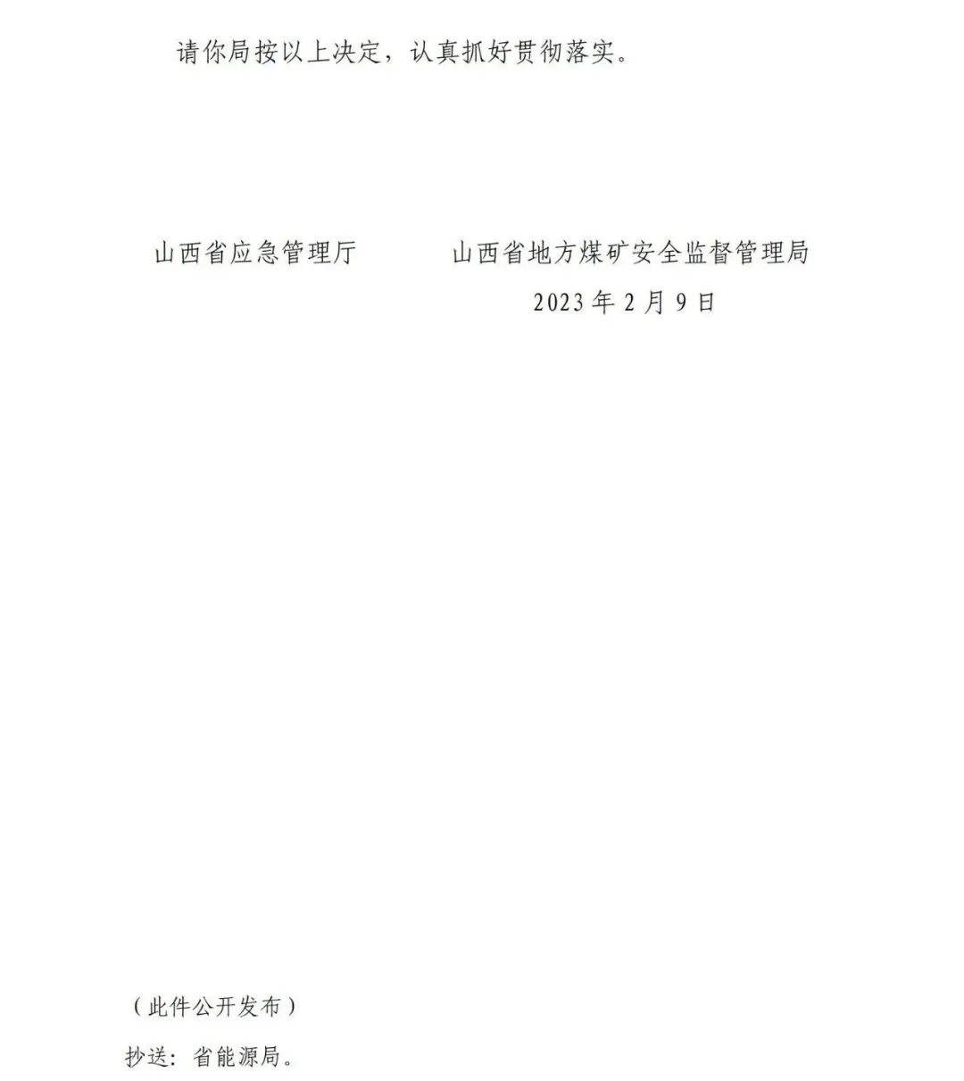 2月9日,山西省應(yīng)急管理廳、山西省地方煤礦安全監(jiān)督管理局下發(fā)通知,責(zé)令山西呂梁離石賈家溝煤業(yè)有限公司停產(chǎn)整頓。