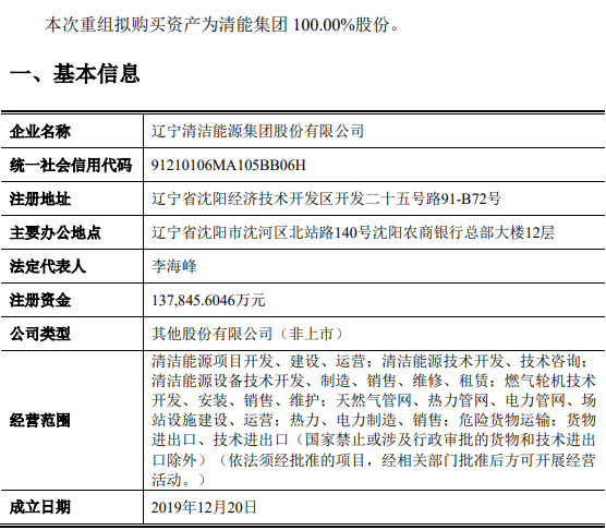 根據(jù)此前公告披露,遼寧能源擬作價18.17億元,以發(fā)行股份的方式收購遼能投資、港華投資、海通新能源等共8名投資者合計(jì)持有的遼寧清潔能源集團(tuán)(簡稱:清能集團(tuán))100%股份,并募集配套資金10億元,用于遼能康平300MW風(fēng)電項(xiàng)目、遼能南票200MW風(fēng)電項(xiàng)目、償還上市公司債務(wù)。