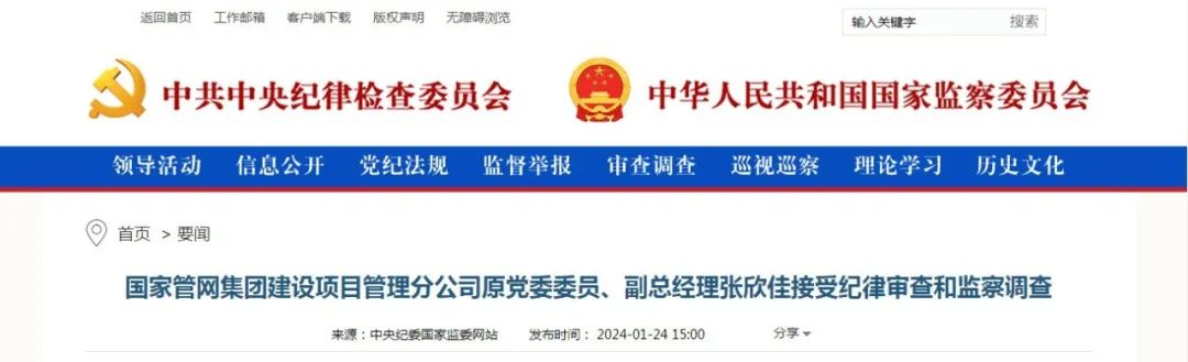 中央紀(jì)委國家監(jiān)委網(wǎng)站1月24日,據(jù)國家管網(wǎng)集團紀(jì)檢監(jiān)察組、遼寧省紀(jì)委監(jiān)委消息:國家管網(wǎng)集團建設(shè)項目管理分公司原黨委委員、副總經(jīng)理張欣佳涉嫌嚴(yán)重違紀(jì)違法,目前正接受國家管網(wǎng)集團紀(jì)檢監(jiān)察組和遼寧省錦州市監(jiān)委紀(jì)律審查和監(jiān)察調(diào)查。