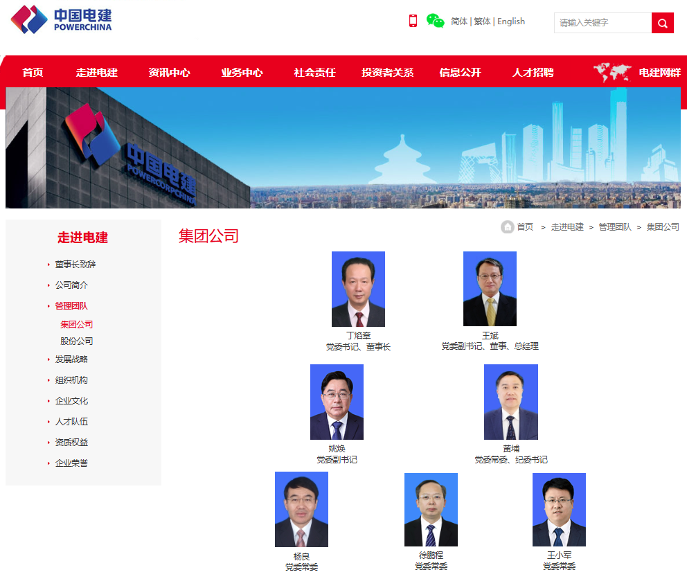 日前,中國電建官網(wǎng)管理團隊更新內容,姚煥已擔任中國電建黨委副書記職務。