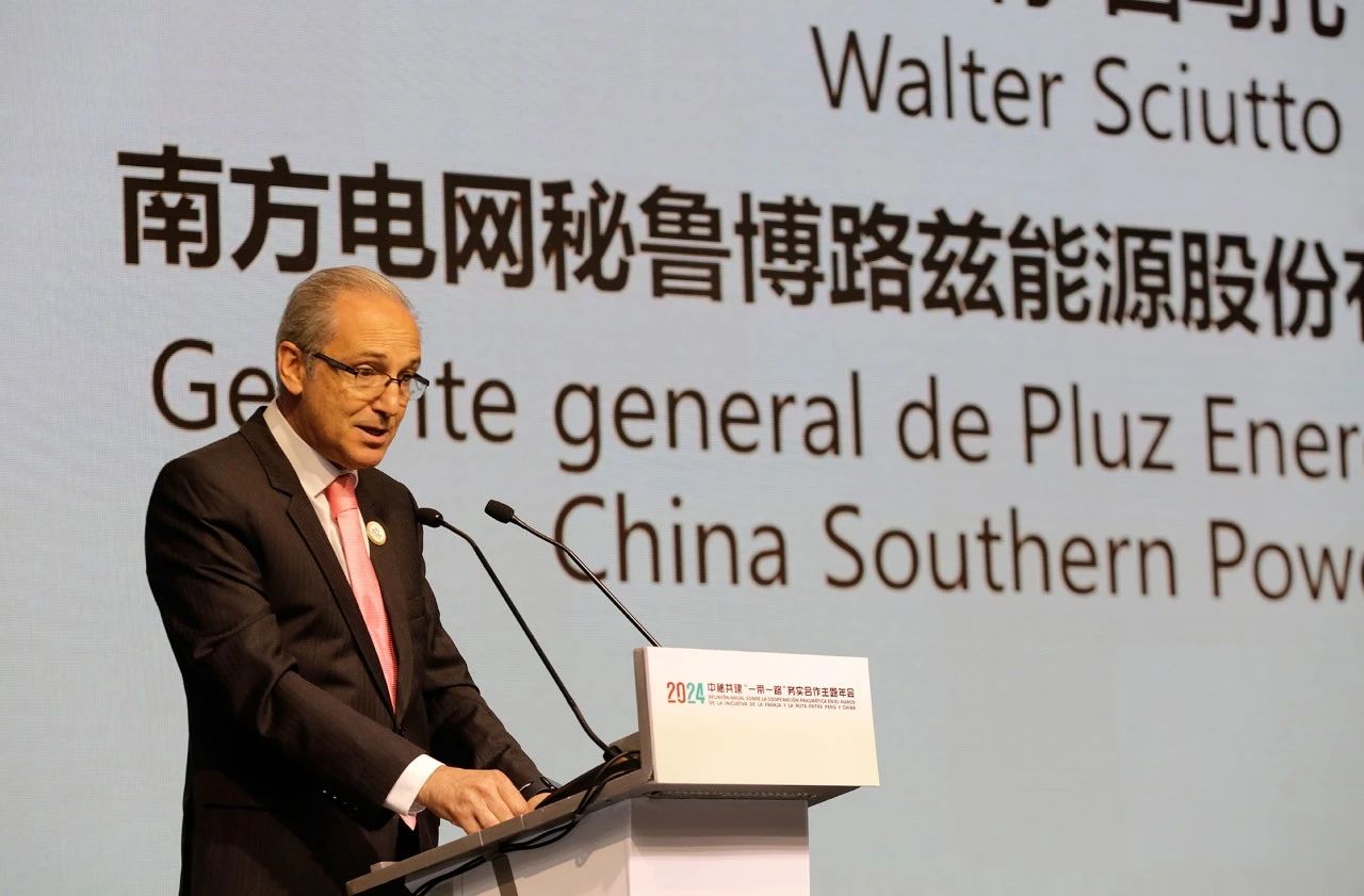 年會期間,公司發(fā)布了中西雙語版《中國式現(xiàn)代化南網(wǎng)新實(shí)踐》報(bào)告,西語版宣傳片《走在光芒之前》在會場展示傳播,首個(gè)境外注冊商標(biāo)“Pluz(博路茲)”在年會上亮相。會前,與會嘉賓還觀看了中拉共建“一帶一路”務(wù)實(shí)合作圖片展,公司多張拉美項(xiàng)目圖片入選展覽。南方電網(wǎng)秘魯博路茲能源股份有限公司(簡稱“秘魯博路茲公司”)總經(jīng)理瓦爾特·休托(Walter Sciutto)受邀在會上發(fā)言。