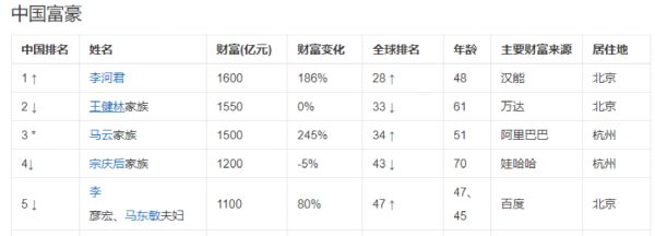 李河君2015年的財富值是2014年的近3倍,成為胡潤百富榜16年來第12位中國首富,全球排名第28位,比去年上升108位。李河君在香港的上市公司漢能薄膜發(fā)電持股市值800億,另外還有非上市部分水電、太陽能及其他產(chǎn)業(yè)。