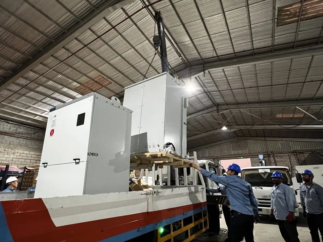 “我們要趁著太陽還沒升起,盡可能把今天的施工進(jìn)度往前趕。”今年49歲的蔡永平是中國電力技術(shù)裝備有限公司沙特分公司總經(jīng)理,也是沙特?cái)?shù)字化智能環(huán)網(wǎng)柜項(xiàng)目負(fù)責(zé)人。此刻,他正與當(dāng)?shù)胤职添?xiàng)目總監(jiān)扎卡里亞確認(rèn)當(dāng)天的施工計(jì)劃,確保每一支施工隊(duì)伍都能在倉庫領(lǐng)到需要安裝的環(huán)網(wǎng)柜設(shè)備及配件。
