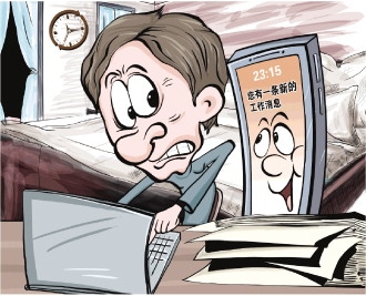 “每天要在微信群里匯報當(dāng)天的工作,聯(lián)系了多少個客戶,進展如何等。如果不回復(fù)消息,就會被歸咎于擅離職守,被領(lǐng)導(dǎo)嚴(yán)厲批評。”今年32歲的馮倩在某銀行支行工作,對她來說,最痛苦的事情就是“24小時待命”的緊迫感——領(lǐng)導(dǎo)要求24小時隨叫隨到,對工作有新想法要24小時隨時溝通。