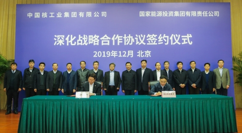 中國(guó)電力網(wǎng)訊 12月29日,在中核集團(tuán)黨組書記、董事長(zhǎng)余劍鋒,國(guó)家能源集團(tuán)黨組書記、董事長(zhǎng)王祥喜等共同見(jiàn)證下,中核集團(tuán)黨組成員、副總經(jīng)理李清堂與國(guó)家能源集團(tuán)黨組成員、副總經(jīng)理高嵩簽署了兩集團(tuán)深化戰(zhàn)略合作協(xié)議,雙方將在項(xiàng)目開(kāi)發(fā)、科技創(chuàng)新、海外市場(chǎng)拓展、人才培養(yǎng)、運(yùn)營(yíng)管理等領(lǐng)域深化戰(zhàn)略合作關(guān)系,充分發(fā)揮雙方優(yōu)勢(shì),實(shí)現(xiàn)互利共贏、共同發(fā)展。國(guó)家能源集團(tuán)黨組副書記、總經(jīng)理劉國(guó)躍主持儀式。