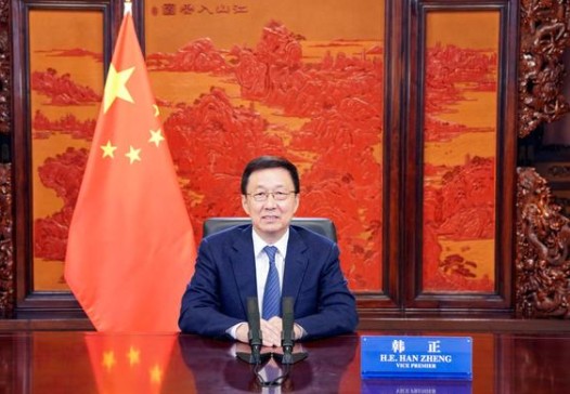 10月18日,中共中央政治局常委、國務(wù)院副總理韓正在北京以視頻方式出席第二屆“一帶一路”能源部長會議并發(fā)表致辭。新華社記者 殷博古 攝