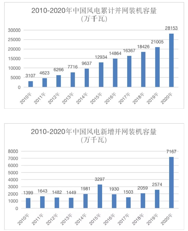 我國風(fēng)電并網(wǎng)裝機(jī)容量在2015年首次突破1億千瓦;2019年突破2億千瓦,用時4年;此次突破3億千瓦,用時僅2年。