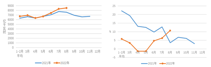 圖1 2021、2022年分月全社會(huì)用電量及其增速
