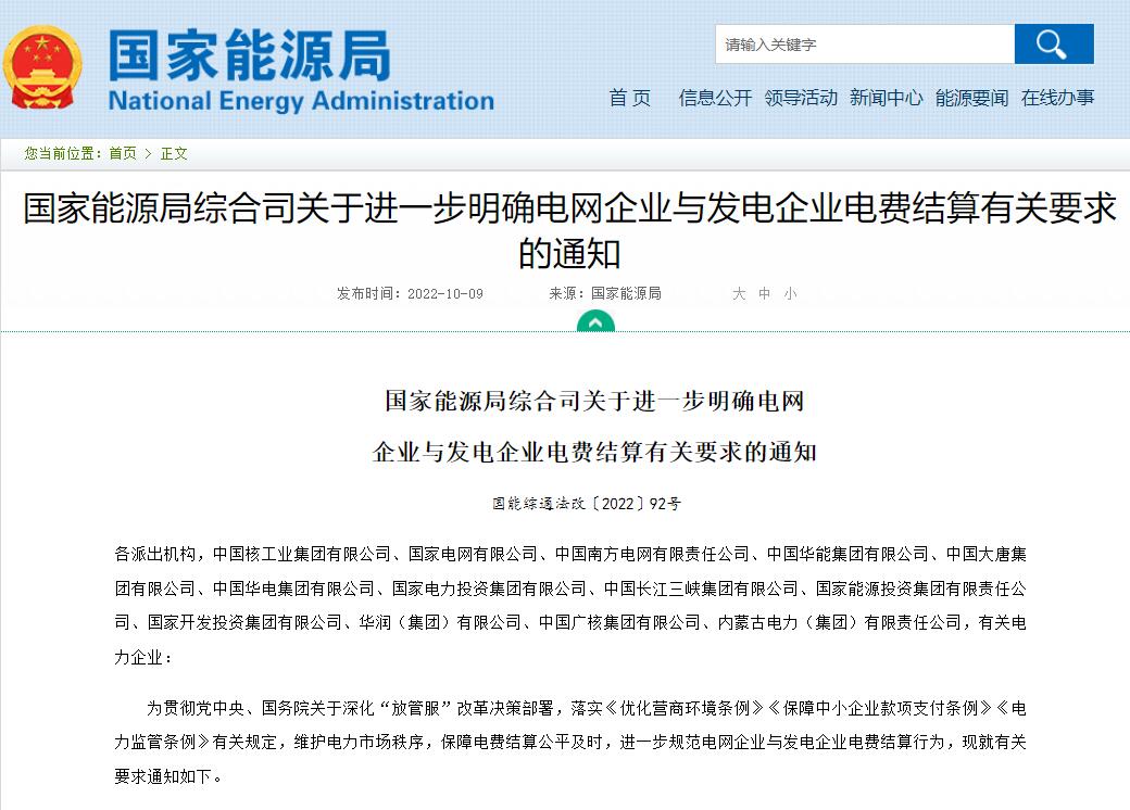 國(guó)家能源局綜合司關(guān)于進(jìn)一步明確電網(wǎng)企業(yè)與發(fā)電企業(yè)電費(fèi)結(jié)算有關(guān)要求的通知