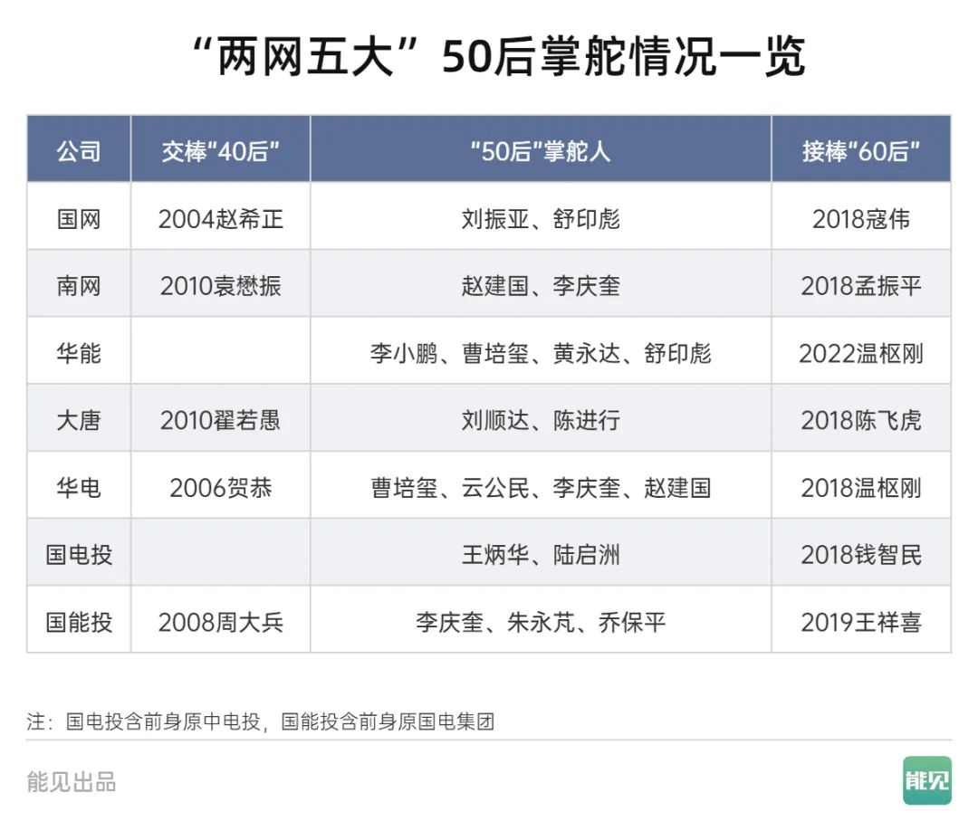 第十二位登場(chǎng)的是1955年1月出生的劉順達(dá)。2010年2月,他接棒“40后”翟若愚,出任大唐集團(tuán)董事長(zhǎng)兼黨組書記。至此,中國(guó)電力行業(yè)告別最后一位“40后”,正式進(jìn)入“50后”全面掌舵時(shí)代。從2002年12月開(kāi)始掌舵,到2010年2月全面掌舵,“50后”花了7年零2個(gè)月;相比之下,“60后”從2018年1月開(kāi)始掌舵到2022年9月全面掌舵,僅僅花了4年零8個(gè)月。“50后”的早熟及其與“40后”長(zhǎng)期并肩作戰(zhàn),保證了中國(guó)電力事業(yè)這艘巨輪過(guò)去二十年的平穩(wěn)快速航行;而劇變的“雙碳”新時(shí)代則催生出“60后”的快速成長(zhǎng)和創(chuàng)新思維。