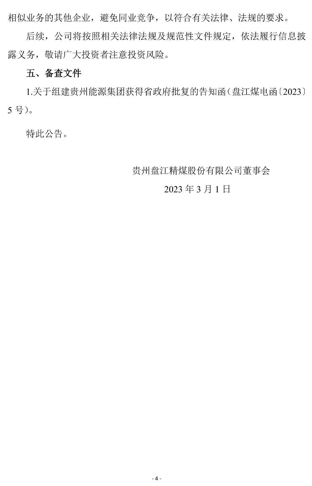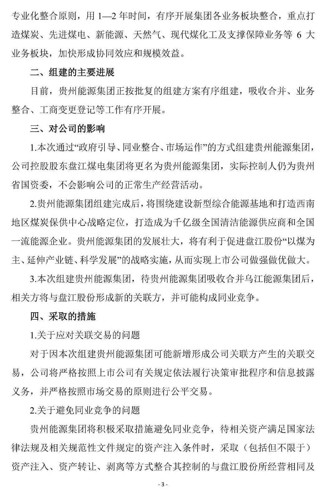 3月1日,盤江股份發(fā)布《關(guān)于控股股東更名的公告》(以下簡稱《公告》)。貴州省擬組建貴州能源集團有限公司(以下簡稱“貴州能源集團”),將盤江煤電集團更名為貴州能源集團。吸收合并貴州烏江能源集團有限責(zé)任公司(以下簡稱“烏江能源集團”)后,注銷烏江能源集團。