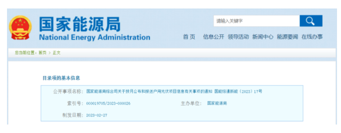 3月9日,國家能源局發(fā)布的《關于按月公布和報送戶用光伏項目信息有關事項的通知》。