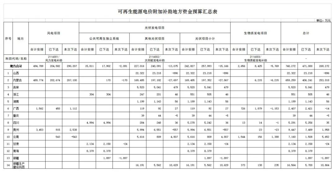 財政部下達風、光、生物質補貼預算
