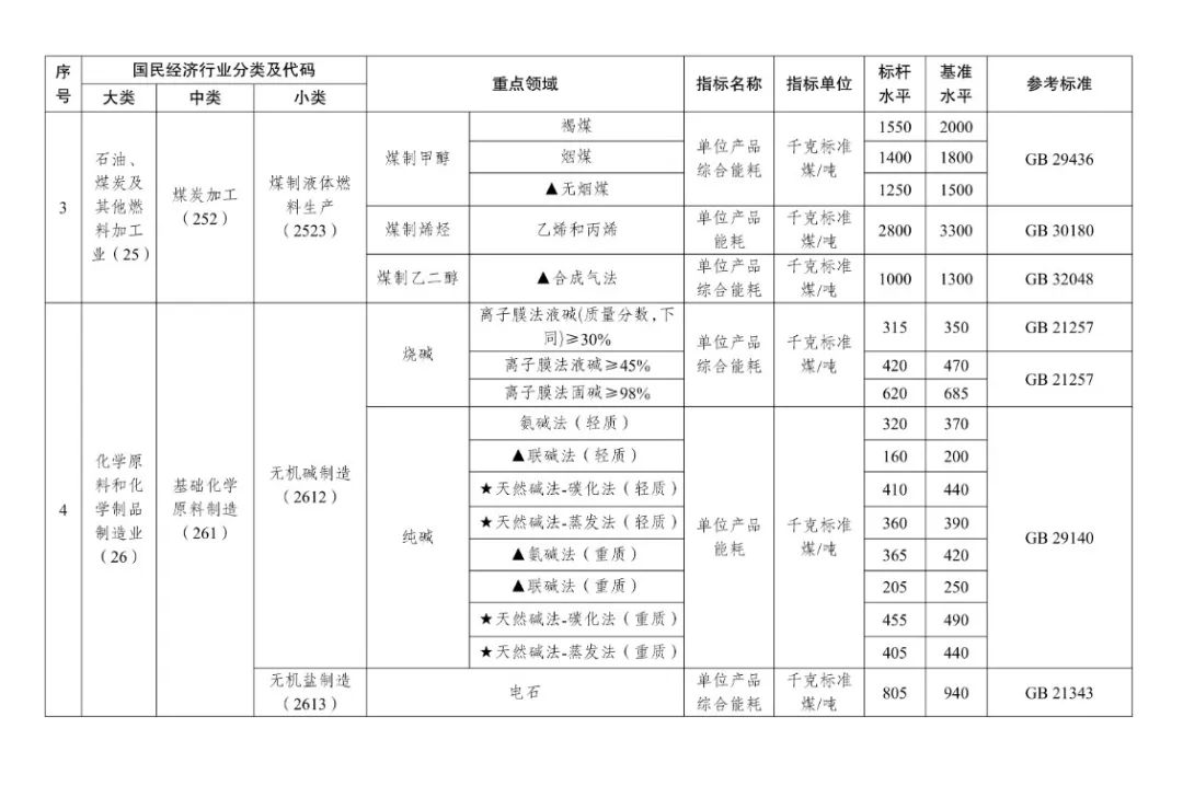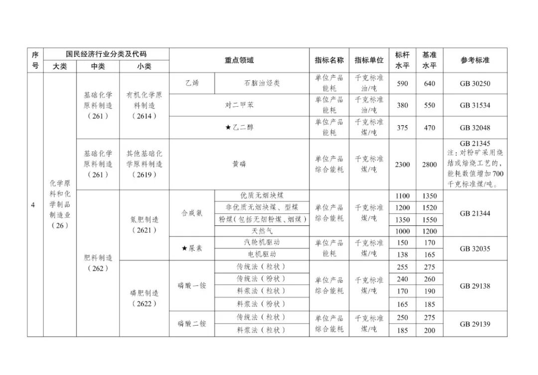 結(jié)合工業(yè)重點(diǎn)領(lǐng)域產(chǎn)品能耗、規(guī)模體量、技術(shù)現(xiàn)狀和改造潛力等,進(jìn)一步拓展能效約束領(lǐng)域。在此前明確煉油、煤制焦炭、煤制甲醇、煤制烯烴、煤制乙二醇、燒堿、純堿、電石、乙烯、對二甲苯、黃磷、合成氨、磷酸一銨、磷酸二銨、水泥熟料、平板玻璃、建筑陶瓷、衛(wèi)生陶瓷、煉鐵、煉鋼、鐵合金冶煉、銅冶煉、鉛冶煉、鋅冶煉、電解鋁等25個(gè)重點(diǎn)領(lǐng)域能效標(biāo)桿水平和基準(zhǔn)水平的基礎(chǔ)上,增加乙二醇,尿素,鈦白粉,聚氯乙烯,精對苯二甲酸,子午線輪胎,工業(yè)硅,衛(wèi)生紙?jiān)垺⒓埥碓?,棉、化纖及混紡機(jī)織物,針織物、紗線,粘膠短纖維等11個(gè)領(lǐng)域,進(jìn)一步擴(kuò)大工業(yè)重點(diǎn)領(lǐng)域節(jié)能降碳改造升級范圍。