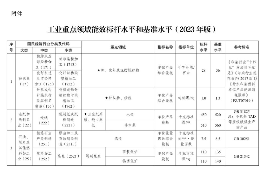 國家發(fā)展改革委等部門關(guān)于發(fā)布《工業(yè)重點(diǎn)領(lǐng)域能效標(biāo)桿水平和基準(zhǔn)水平(2023年版)》的通知
