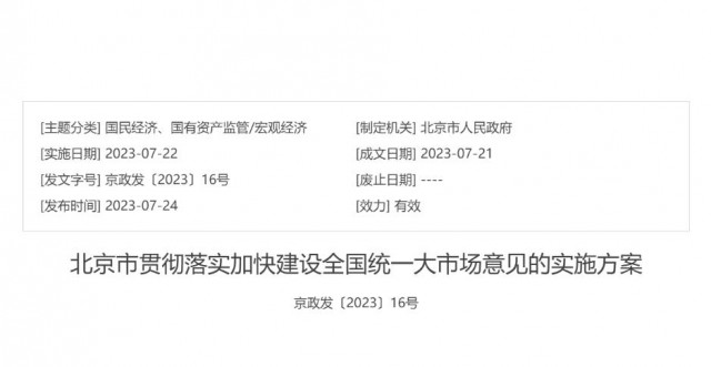 《北京市貫徹落實加快建設全國統(tǒng)一大市場意見的實施方案》全文如下: