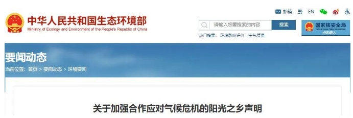 11月15日,生態(tài)環(huán)境部公布了中美關(guān)于加強合作應對氣候危機的陽光之鄉(xiāng)聲明。