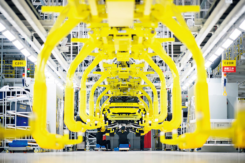 推進(jìn)新型工業(yè)化是實(shí)現(xiàn)經(jīng)濟(jì)高質(zhì)量發(fā)展的戰(zhàn)略選擇。圖為2023年1月11日,湖北省武漢市經(jīng)開區(qū)智能網(wǎng)聯(lián)和電動汽車產(chǎn)業(yè)園內(nèi),工人在一家汽車公司的流水線上作業(yè)。 新華社記者 肖藝九/攝