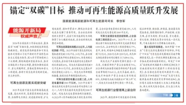 2024年是實(shí)現(xiàn)“十四五”規(guī)劃目標(biāo)任務(wù)的關(guān)鍵一年。隨著市場(chǎng)競(jìng)爭(zhēng)更加充分、技術(shù)不斷進(jìn)步,特別是黨中央高度重視,新能源和可再生能源將繼續(xù)保持高速發(fā)展態(tài)勢(shì)。新的一年,要按照穩(wěn)中求進(jìn)、以進(jìn)促穩(wěn)、先立后破的工作總基調(diào),堅(jiān)持陸海并進(jìn)、集散并舉、多能互補(bǔ)、融合發(fā)展,持續(xù)推進(jìn)可再生能源高質(zhì)量躍升發(fā)展。