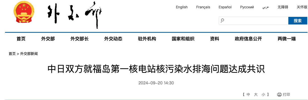 外交部:中日雙方就福島第一核電站核污染水排海問(wèn)題達(dá)成共識(shí)