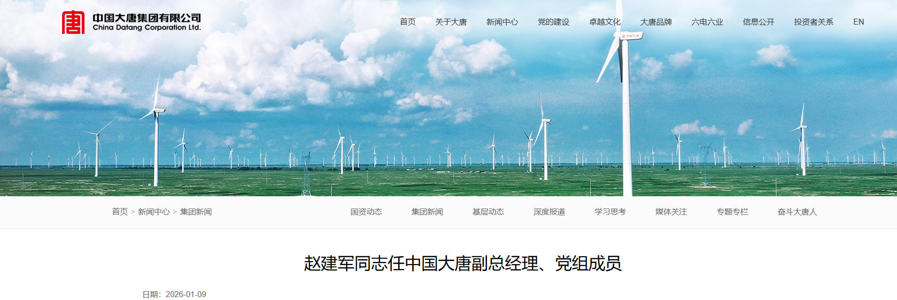 1月9日上午,中國大唐集團有限公司召開領導班子擴大會議,通報了中央關于趙建軍同志任中國大唐集團有限公司副總經(jīng)理、黨組成員的決定。上述任職按有關法律規(guī)定辦理。