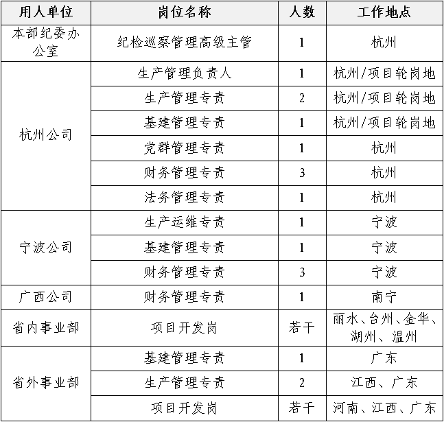 根據(jù)公司發(fā)展需要,浙江分公司本部及其所屬單位,杭州公司、寧波公司、廣西公司、各事業(yè)部現(xiàn)面向社會公開招聘相關(guān)人員,具體事項(xiàng)公告如下: