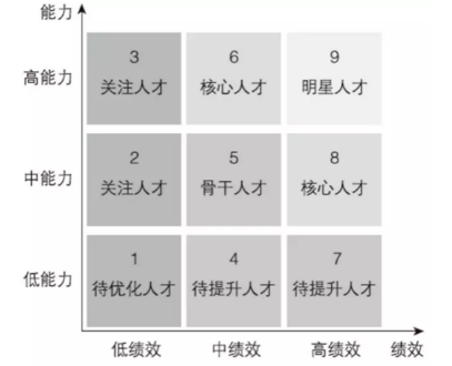 無論個人還是組織,提升能力的終極目標(biāo)都是為了超越自我,實現(xiàn)目標(biāo),因此高能力一定要轉(zhuǎn)化為高績效。每年我們都會做人才盤點,其作用之一就是要識別出不同能力和績效表現(xiàn)的同事。下圖九宮格是人才盤點所使用的工具之一,其中9號區(qū)域的就是人見人愛又省心的“明星員工”。對于4號、7號區(qū)域的同事需要提升其能力,而對于2號、3號區(qū)域的同事則要特別關(guān)注,為什么他們的高能力沒有轉(zhuǎn)化為高績效?是人崗配置不合適嗎?是組織流程阻礙了個人價值發(fā)揮嗎?還是沒有點燃他們內(nèi)心的工作激情?