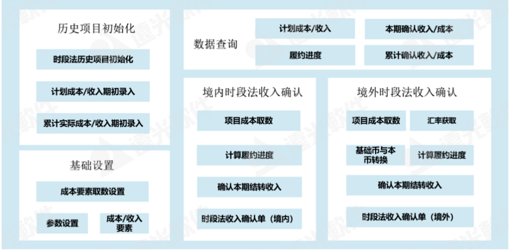 遠光軟件通過對有跨境業(yè)務(wù)的某能源建設(shè)及施工央企相關(guān)業(yè)務(wù)的深入研究,結(jié)合先進軟件技術(shù)和新收入準則要求自主研發(fā)出“時段法收入核算系統(tǒng)”(以下簡稱“系統(tǒng)”)。