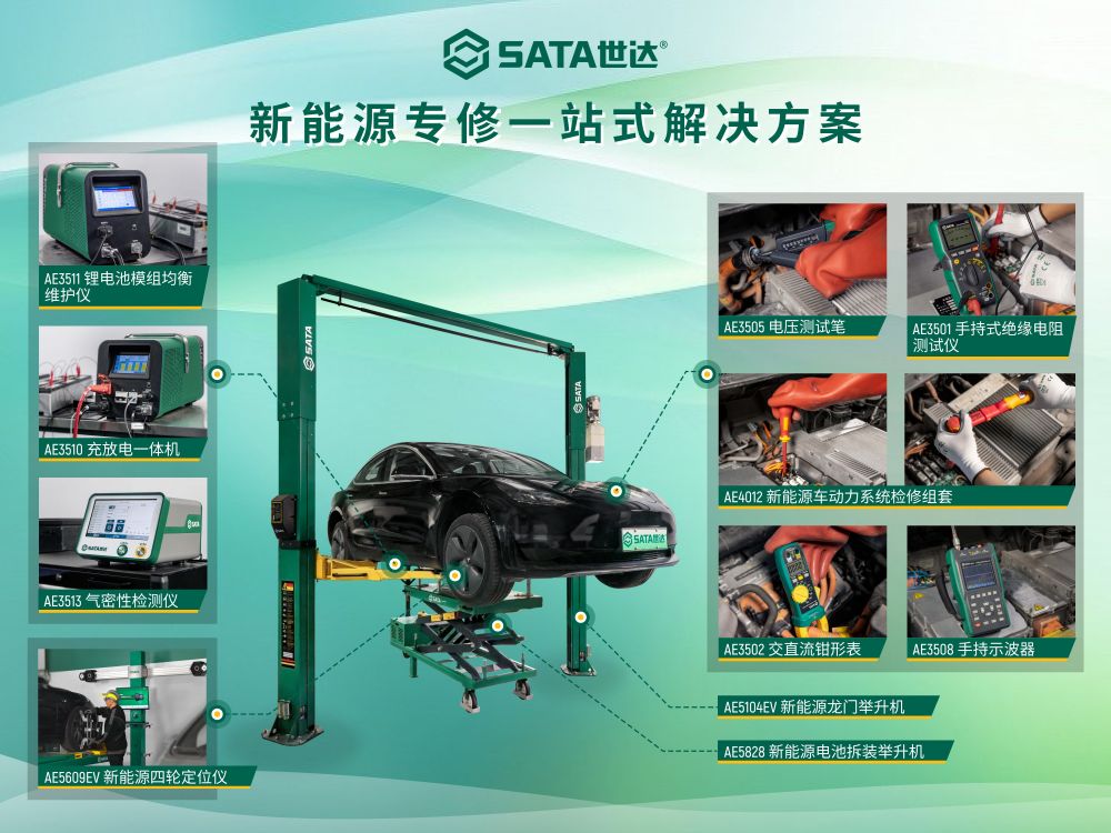 自2017年以來(lái),SATA世達(dá)全品一站式解決方案,解決了用戶汽車(chē)維修保養(yǎng)的基本需求。而在新能源汽車(chē)崛起的現(xiàn)在,SATA世達(dá)更是緊跟行業(yè)步伐,推出了新能源汽車(chē)專屬解決方案,全套的新能源維修設(shè)備為用戶創(chuàng)造更高價(jià)值。