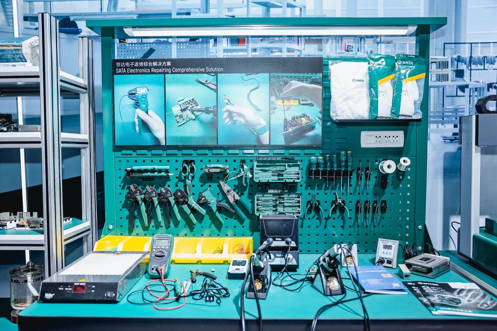 3) SATA世達(dá)電子綜合返修方案,搭配錫絲手工焊臺(tái),微型夾持鑷子,各規(guī)格剝線壓接鉗,專用電子微型螺絲刀,高精度電表等,可應(yīng)對(duì)各種產(chǎn)品返修檢測(cè)需求。