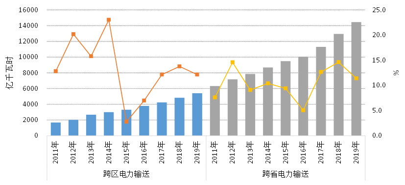 圖 2011~2019年跨區(qū)、跨省電力輸送電量情況