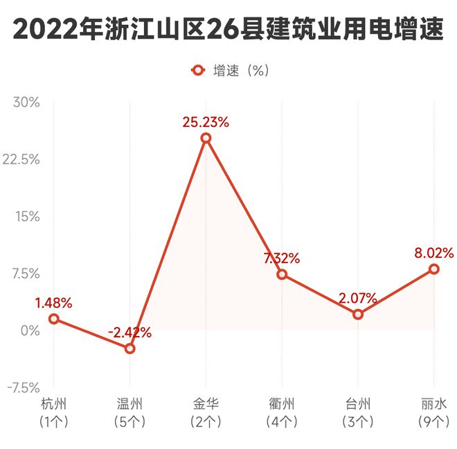 2022年,全省建筑業(yè)用電量為102.64億千瓦時,同比下降1.75%。山區(qū)26縣全年建筑業(yè)用電量12.08億千瓦時,同比增長3.82%,增速高于全省平均水平,實現(xiàn)了逆勢增長。這是浙江推進(jìn)山海協(xié)作,加快補齊山區(qū)縣域交通基礎(chǔ)設(shè)施、新型城鎮(zhèn)化建設(shè)短板,在電量上的正向體現(xiàn)。