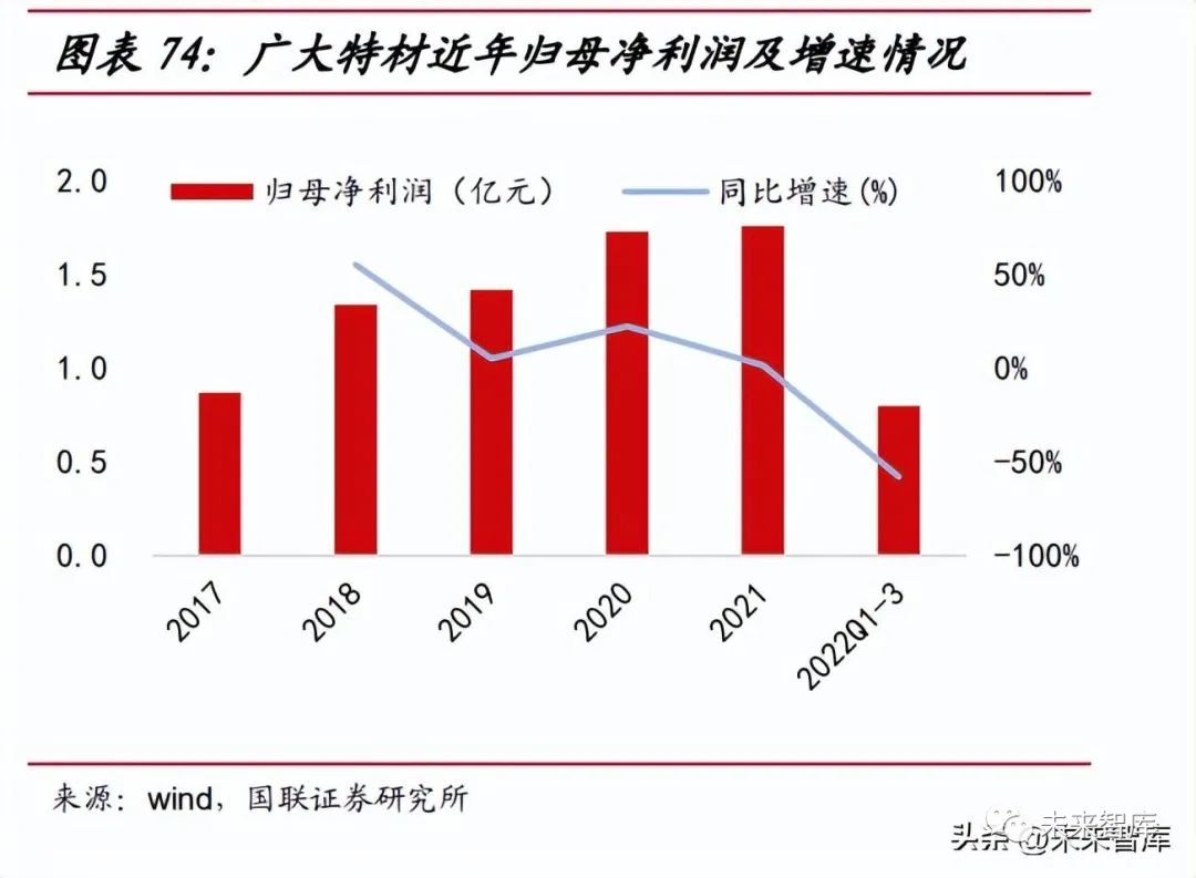 廣大特材于 2006 年成立,主營業(yè)務為高端特鋼材料和風電零部件。公司于 2019 年近進軍風電鑄件業(yè)務,截至 2022 年擁有大兆瓦風電鑄件產能 10-12 萬噸, 2023 年中期將形成 20 萬噸大兆瓦風電鑄件產能。2022 年 10 月公司可轉債項目 獲證監(jiān)會批準,擬投資 11.5 億元建設 8.4 萬件風電齒輪箱核心精密零部件產能。2022 年前三季度公司營業(yè)收入同比有所上升 21.85%,但由于風電行業(yè)總體 需求減弱,再結合疫情反復、鋼材價格總體維持高位,前三季度歸母凈利潤同比下 降 57.91%。