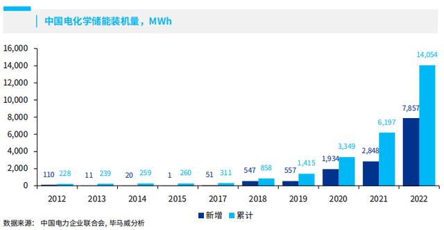 以電化學(xué)儲(chǔ)能為主的新型儲(chǔ)能增長(zhǎng)迅速,成為儲(chǔ)能行業(yè)發(fā)展的主力。電化學(xué)儲(chǔ)能功率范圍較廣、能量密度高,相較其他新型儲(chǔ)能技術(shù)成熟度更高,因此適用場(chǎng)景更廣泛。此外,相較抽水蓄能來(lái)說(shuō),電化學(xué)儲(chǔ)能安裝更為便捷、不受區(qū)位限制, 正成為儲(chǔ)能產(chǎn)業(yè)發(fā)展新動(dòng)力。截至2022年底,全國(guó)電力安委會(huì)19家企業(yè)成員單位總計(jì)報(bào)送500kW/500kWh以上的各類電化學(xué)儲(chǔ)能電站772座、總能量43.08GWh。